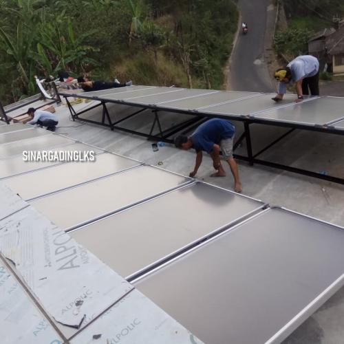 u003cp style=u0022text-align: left;u0022u003ePemasangan solahart dan handal di atap datar standarnya dilengkapi rangka dudukan dengan sudut kemiringan 20° s.d 35°. Dan pemasangan di atap miring umumnya tidak membutuhkan rangka dudukan tambahan. Tapi standard tersebut akan berubah ketika dihadapkan pada kondisi pasang yang memiliki karakteristik khusus. Oleh karenanya tim teknis CV. Sinar Gading Lks selalu dilatih untuk taktis dan cermat dalam menghadapi berbagai kemungkinan dilapangan. Faktor keamanan dan keselamatan merupakan point utama yang diperhatikan. Untuk itu, kami terbiasa melakukan survey lokasi pasang setelah mengajukan penawaran harga produk.u003c/pu003en